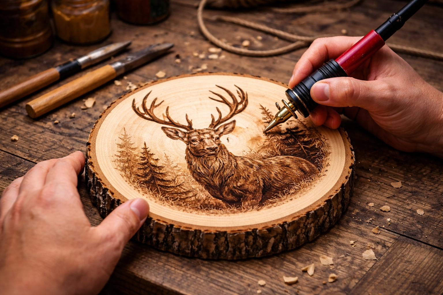 Dnes by sme si predstavili túto skvelú záľubu. Vypaľovanie do dreva, odborne nazývané pyrografia, je krásny koníček a relax. Silou ohňa môžete do dreva vytvoriť neskutočné obrázky. Samozrejme človek musí mať troška talent a cit pre kreslenie.
